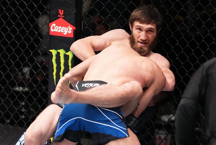 Kakhramonov’s chain wrestling continued to impress, with Nurmagomedov having little answer until the final ninety seconds of the frame. Then, he locked up another guillotine choke — and made it count! Within moments, Kakhramonov was forced to tap in a fight he had been dominating to that point.