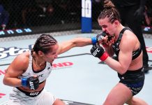 It was straight to the ground again in round three, Murata on top and Demopoulos showing some impressive flexibility. With no opening, however, Demopoulos resorted to throwing punches off her back— while Murata fired more effective blows from the top. The more time Demopoulos spent on her back, the less likely it was that she’d win the round. The double hammerfists returned for Kanako Murata, whose top control in rounds two and three became a key factor in the fight. A late arm-bar attempt was too little, too late for “Lil Monster,” and by the time she escaped to her feet there was only 15 seconds left in the round — and she was slammed back down anyway. However, with the scorecards announced, it was Demopoulos coming away with the unanimous decision win.