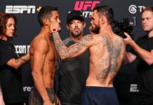 Johnson was the aggressor to start the final round going after Estevam. He did get carried away and Estevam shot in on the legs. Johnson defended as Estevam was visibly tired. Estevam kept going for takedowns just being relentless on the shots. Estevam has his hands locked but is maybe too tired to get Johnson down. Johnson looks at the ref and the fight gets separated. Johnson was marching forward going up high and to the body but was throwing one punch at a time. More missed takedowns from Estevam as he was shooting desperately. Johnson wasn’t landing anything hard but was making Estevam uncomfortable with the pressure. Johnson ran out of time that most likely will be a loss for him.