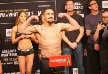 Coming into round three it was clear that Jousset needed a finish. Jousset continued to struggle keeping up with Micallef. He’d throw the body kick but when Micallef would throw he’d land with a thudding sound. You can also see the redness on the right side of Jousset’s body from all the kicks. Jousset was attempting to cut the cage off but Micallef was showing good footwork constantly circling. With a minute left Micallef and Jousset were letting loose. Micallef with more kicks and straights and Jousset trying to crowd him with volume. All the thudding and damaging blows were landed by Micallef, though Jousset kept at it until the final horn. No surprise as to the winner in this one, with newcomer Jonathan Micallef earning the nod from all three judges.