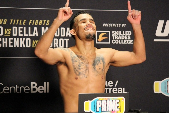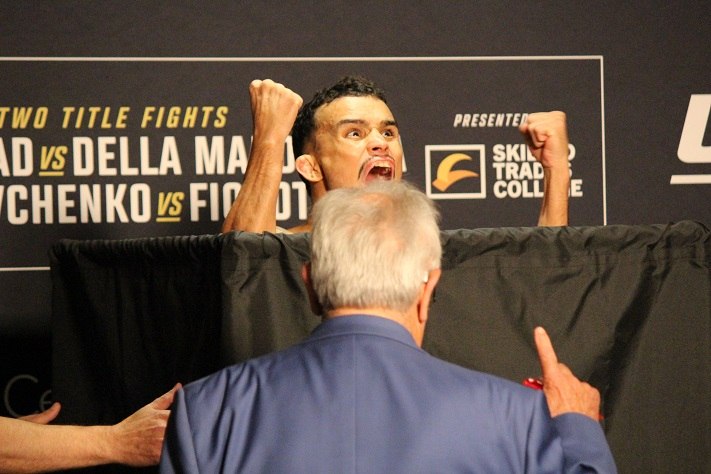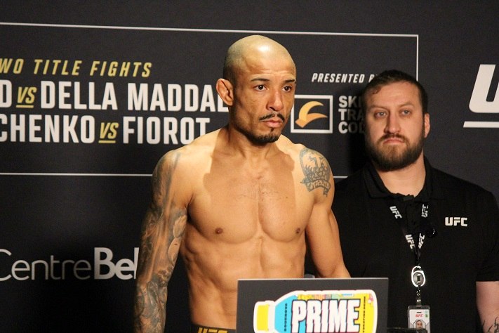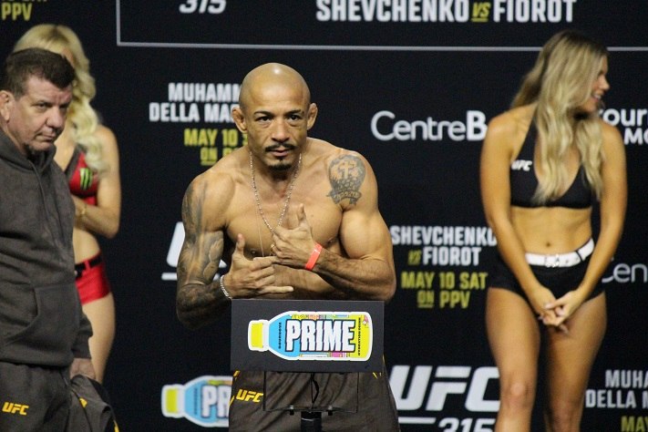 Moments before Jose Aldo stepped on the scale, it was announced that his fight with Aiemann Zahabi had been shifted to featherweight. Reportedly, Zahabi had all of a pound left to cut when he got word that Aldo was struggling with this weight cut for what was originally a bantamweight fight. Aldo weighed in at 143, Zahabi at 142.