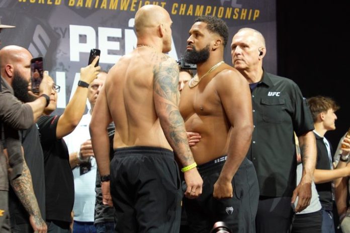 It certainly was early, with Spivac, a well-travelled Moldovan heavyweight, connecting a couple of times in the opening minute, drawing an immediate reaction from the crowd. “The Polar Bear” then backed Cortes-Acosta up against the fence, and caught a leg kick, dumping the former baseball player; to his credit, Cortes-Acosta quickly made his way back to his feet.