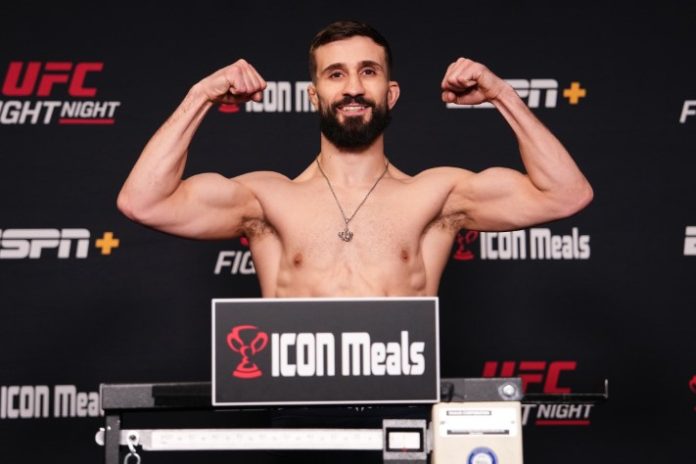 But just hold up a moment there. Orolbai’s fight with Musayev had been shifted to a catchweight shortly ahead of weigh-ins, though neither man officially missed weight, and no explanation was given. Still, rather than grant Orolbai a bonus, UFC officials instead awarded Performance of the Night bonuses to both Nazim Sadykhov and, surprisingly, Nikolas Motta as well.