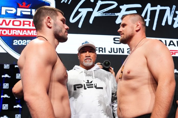 “Valentin Moldavsky vs Alexandr Romanov ends in a no contest after an accidental groin strike (1st round, 4:26). Per PFL World Tournament rules, for the purpose of determining advancement in the tournament, in the case of a no contest the three judges are asked to choose the fighter who they think had the most complete body of work for the entirety of the fight. The judges chose Romanov to progress to the finals. The official result will remain a no contest. Romanov will face Oleg Popov for the 2025 PFL World Tournament Heavyweight Title.”