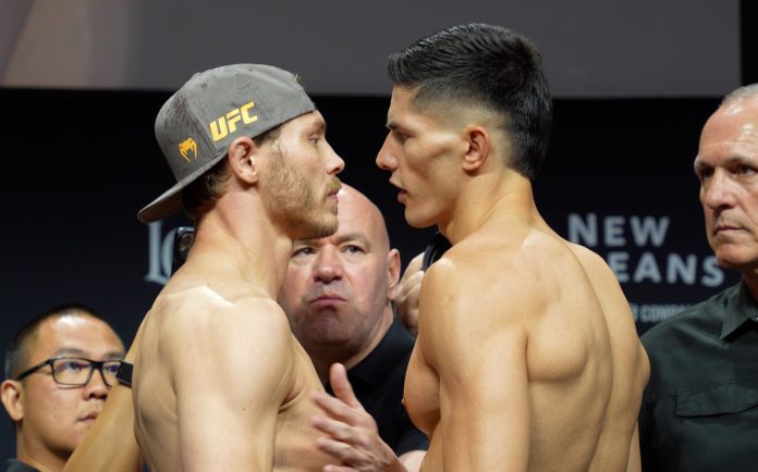 Moments later, Dulatov came in with two vicious knees that narrowly missed ending the fight early. Fugitt responded with a well-timed single leg that briefly pushed Dulatov to the fence, but once again, Dulatov escaped with clean footwork.