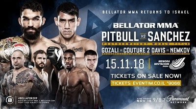 Bellator 209 Byadmincsp -September 4, 2018 Share on Facebook Tweet on Twitter Date: November 15, 2018Location: Tel Aviv, IsraelMore info