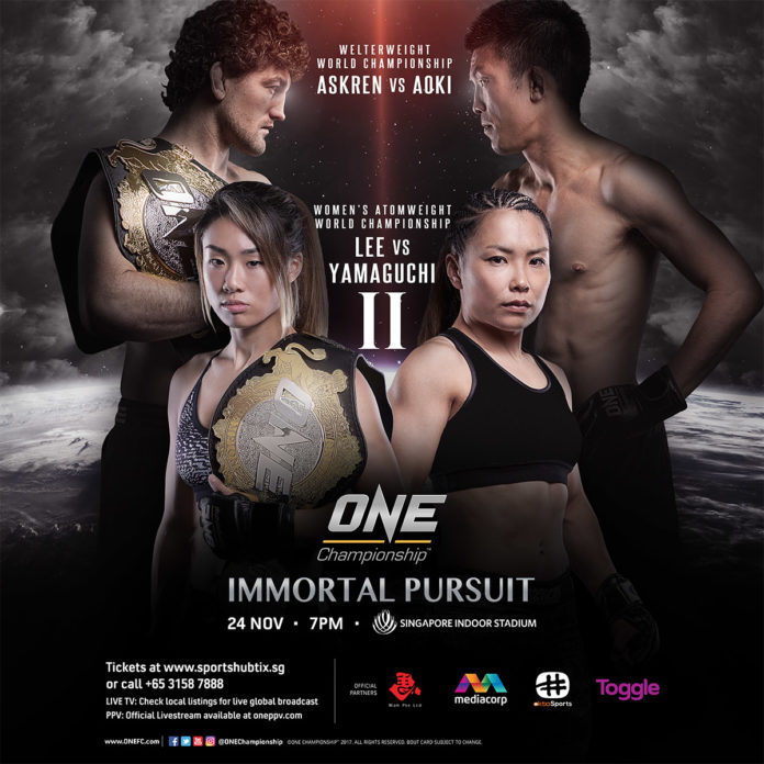 ONE Championship: Immortal Pursuit Byadmincsp -November 10, 2017 Share on Facebook Tweet on Twitter Date: November 24, 2017Location: Singapore Indoor Stadium, SingaporeMore info