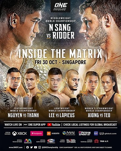 ONE Championship: Inside the Matrix Byadmincsp -October 13, 2020 Share on Facebook Tweet on Twitter Date: October 30, 2020Location: Kallang, SingaporeMore info
