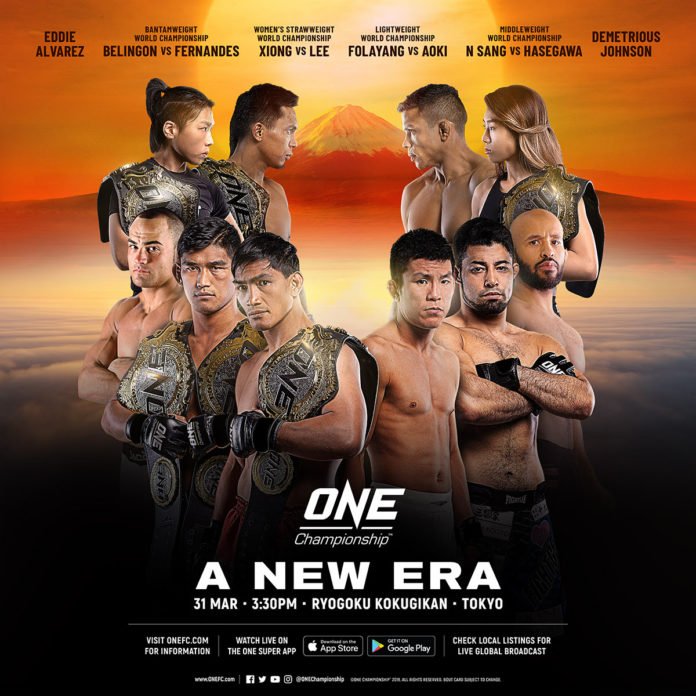 ONE Championship: A New Era Byadmincsp -March 23, 2019 Share on Facebook Tweet on Twitter Credit: ONE Championship Date: March 31, 2019Location: Tokyo, JapanMore info