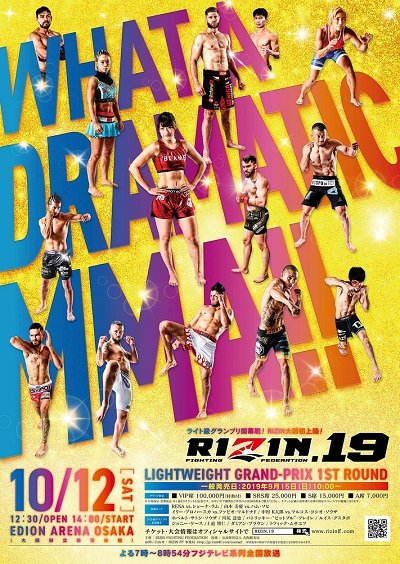 RIZIN 19 Byadmincsp -September 29, 2019 Share on Facebook Tweet on Twitter Date: October 12, 2019Location: Osaka, JapanMore info