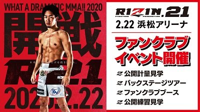 RIZIN 21 Byadmincsp -February 16, 2020 Share on Facebook Tweet on Twitter Date: February 22, 2020Location: Hamamatsu, JapanMore info