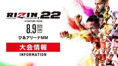 RIZIN 22 Byadmincsp -August 3, 2020 Share on Facebook Tweet on Twitter Date: August 9, 2020Location: Yokohama, JapanMore info